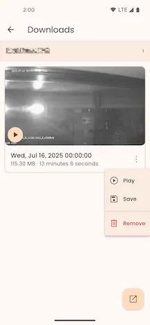 Section titled “Play File”Tap the video thumbnail of a downloaded file to play it using the system player.