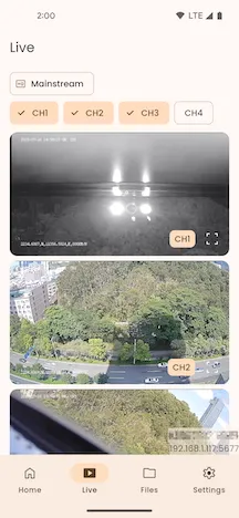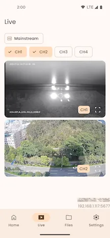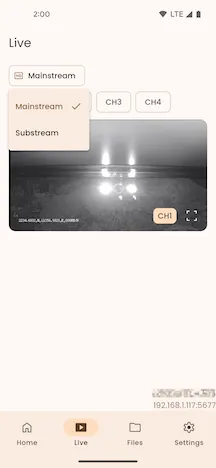 Click the Live Stream menu button to select either the Main Stream or Sub Stream for video streaming.
